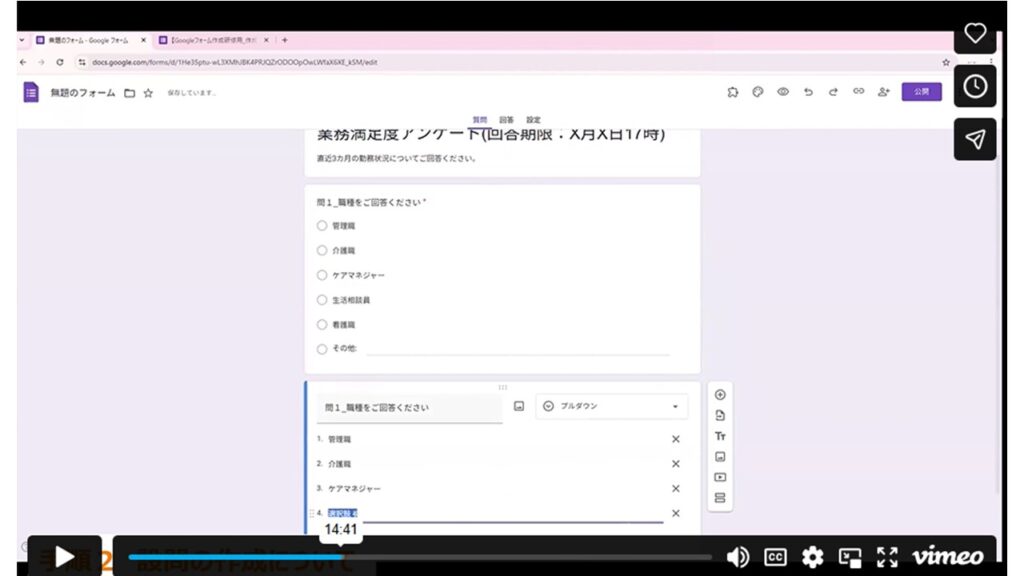 Vimeo【介護事業所のいまさら聞けないシリーズ】Googleフォーム作成編