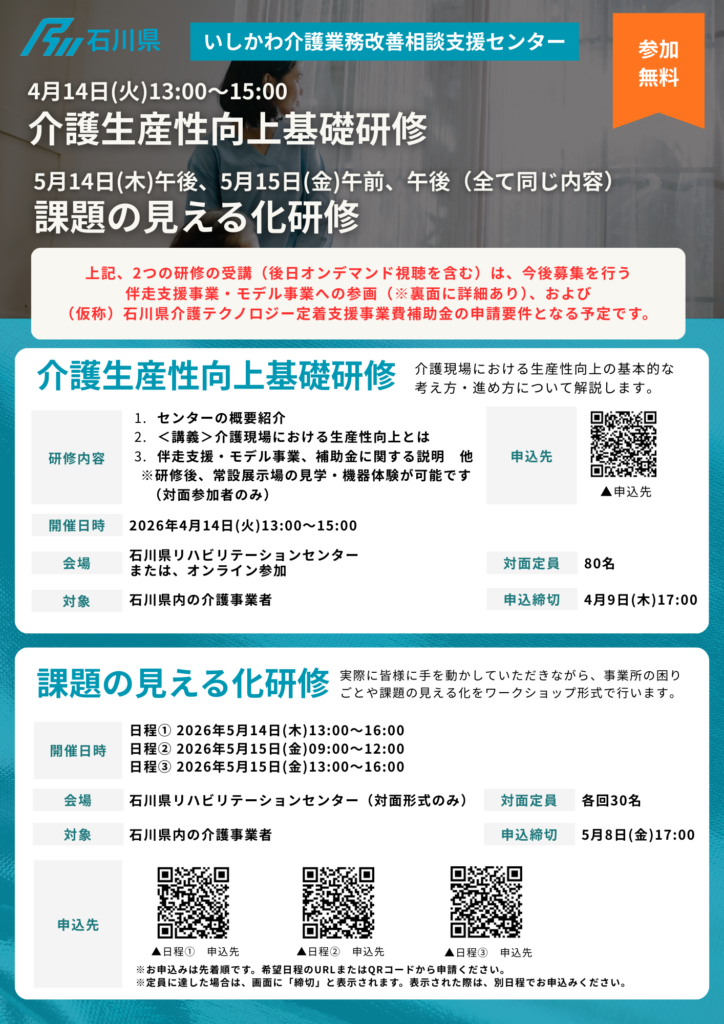 【4/14、5/14】令和8年度 介護生産性向上 基礎研修、課題の見える化研修を実施します